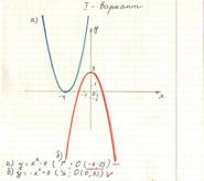 Ученики сделали вывод: а)определили направление ветвей(вверх) и координаты вершины параболы(2, 3) б) определили направление ветвей(вниз) и координаты вершины параболы(3, 5).