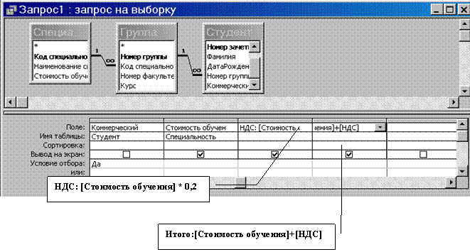 Рис. 11. Вид запроса с вычисляемым полем в режиме конструктора