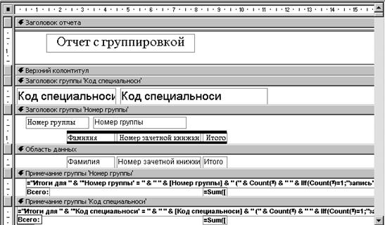 Рис. 12. Откорректированный отчет с группировкой в режиме конструктора