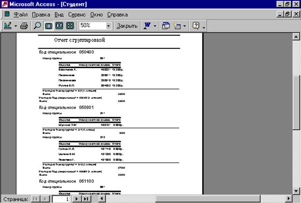 3. Закройте отчет и сохраните его под именем Отчет с группировкой.