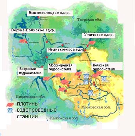 Сейчас Москва практически полностью снабжается водой из поверхностных источников, расположенных на территории Московской, Смоленской и Тверской областей. Площадь водосбора Москворецко-Вазузской водной системы равна 15 тыс. км2, Волжской – 40 тыс. км2.
