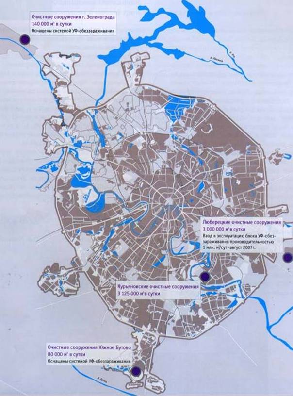 Рис. 13. Карта канализационных очистных сооружений Москвы.