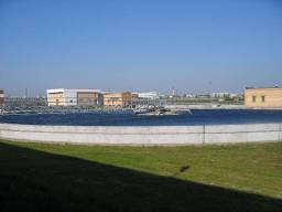 После механической очистки вода поступает на сооружения биологической очистки (аэротенки) и во вторичные отстойники. Аэротенки – представляют собой резервуары, состоящие из четырёх коридоров. Ширина каждого коридора – 10 м, глубина – 6 м, длина – 138 м.