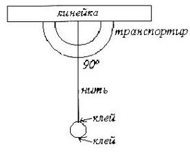 3. Прикрепите скотчем свободный конец нитки к центру прямой части транспортира так, чтобы в подвешенном состоянии нить пересекала транспортир на отметке 90°С.