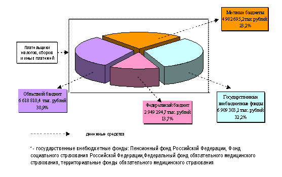- в бюджеты государственных внебюджетных фондов – 6 909 303,1 тыс. рублей (32,2%) (диаграмма 1).