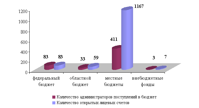 - администраторам доходов федерального бюджета - 83 лицевых счета;