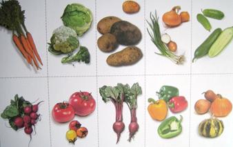 На ковре (на полу) разложены картинки с овощами. Один ребенок называет овощ. Другие бегут и приносят картинку с названным овощем.