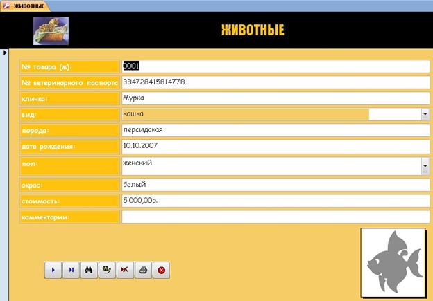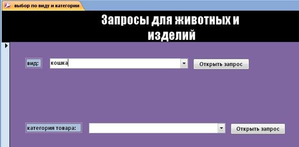 Ниже представлен пример вложенного кнопочного меню для БД «Продажи животных и сопутствующих товаров».
