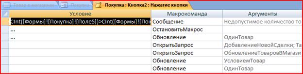 На нажатие кнопки «Выбрать товар» назначен специально разработанный макрос (рис.2.6.), состоящий из нескольких микрокоманд.