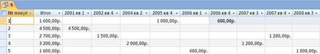 в) Подсчёт поквартальной суммы затрат покупателей (запрос «5»).