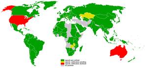 ü зеленым цветом отмечены страны ратифицировавшие Киотский протокол