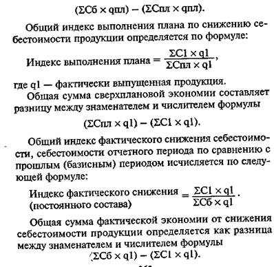 Для проверки выполнения плана по себестоимости необходимо фактическую себестоимость единицы продукции сопоставить с плановой. Индекс выполнения плана по снижению себестоимости определяется по формуле