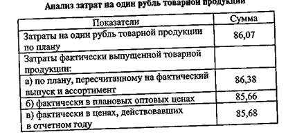 Вопрос 2. Анализ затрат на один рубль товарной продукции
