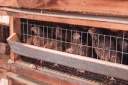После 10-го дня подросших птенцов помещают в так называемые промежуточные клетки. Размер такой клетки порядка 50х90 см, высота - 40-50 см. В клетке одна лампа мощностью 25-40 Вт для освещения. Пол уже не сплошной, а сетчатый, как во "взрослой" клетке. Кормушки и поилки вынесены за пределы клетки, но, в отличие от "взрослой" клетки, размер ячейки сетки в местах доступа к кормушкам и поилкам 25х25 мм.