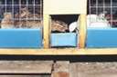 На этой фотграфии видно как сделана и закреплена кормушка (слева). На переднем плане видна дополнительная кормушка, в которую можно положить траву и прочую зелень...