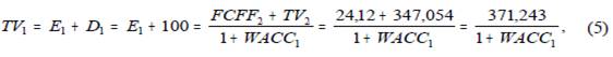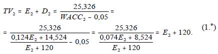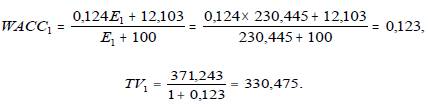 Проверим полученное значение TV1, для чего определим из (8) WACC i, после чего подставим полученное значение WACC1 в (5):