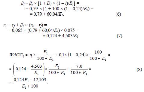 Подставляя полученное в (8) значение для WACCi в (5), получим уравнение: