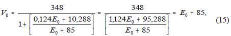 решение которого относительно Eo приводит к значению Eo = 224,833. Отсюда значение Vo = 224,833 + 85 = 309,833.