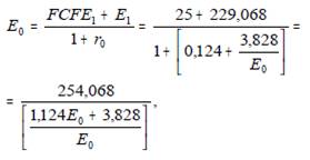 Отметим, что если бы мы изначально захотели определить значение для E2 на основе потоков на собственный капитал, результат расчета был бы следующим: