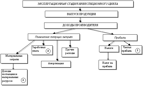 Состав мультипликаторов определен с учетом механизма возникновения мультипликативного эффекта на инвестиционной (рисунок 3) и эксплуатационной (рисунок 4) стадиях инвестиционного цикла (таблица 5).