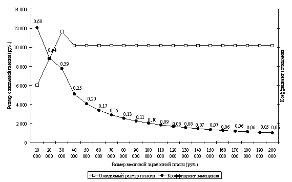 Анализ зависимости коэффициентов замещения и ожидаемых пенсий