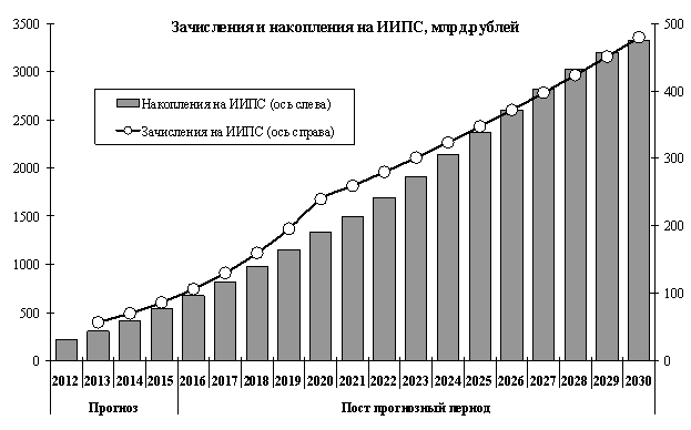 В результате, по нашим оценкам, доходы финансовых посредников от обслуживания ИИС составят 5 млрд. рублей в 2012 г., увеличившись в 2020 г. до 34 млрд. рублей и в 2030 г. – 74 млрд. рублей.