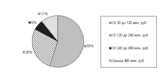 Распределение страховых компаний по размеру уставного капитала в 2009 г.[1]