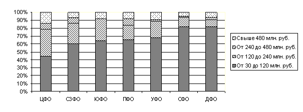 Из таблицы 2 можно сделать вывод, что совокупный уставный капитал распределен неравномерно. Компании с крупнейшим капиталом сконцентрированы в Центральном федеральном округе.