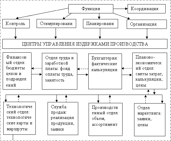 - выделение центров ответственности управления издержками и закрепление за ними функциональных обязанностей;