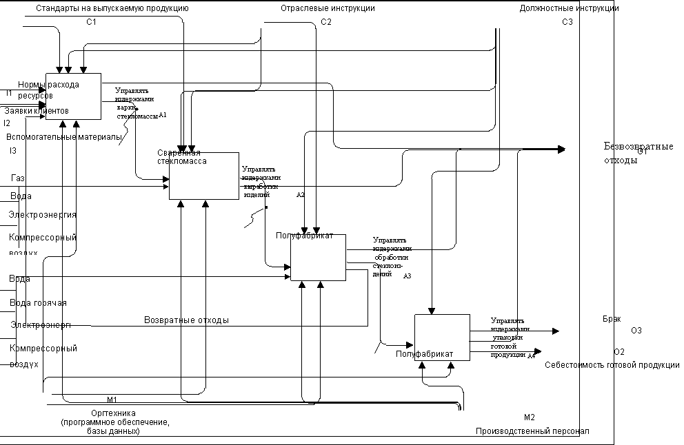 Рис. 3. Контекстная диаграмма бизнес-процесса «Управление издержками производства стекольного предприятия»