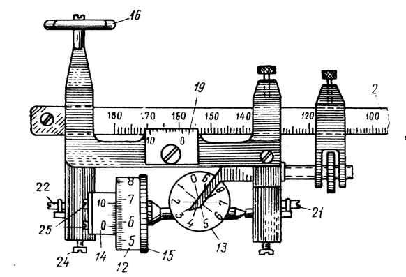 1. Счетное колесо должно вращаться свободно и без колебаний. Если ось колеса слишком зажата в удерживающих ее центрах или колесо касается примыкающего к нему верньера, то вращение его будет задерживаться и могут возникнуть ошибки при измерениях.