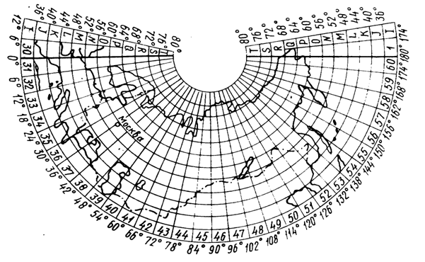 За основу разграфки и номенклатуры листов топографических карт принята разграфка листов карты масштаба 1:1 000 000. Схема такой разграфки приведена на рис. 46.