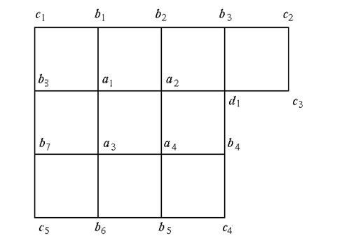 соответственно суммы отметок вершин, общих для двух, трех и четырех квадратов.