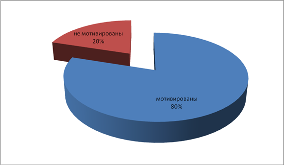 Из диаграммы видно, что уровень мотивации на 2010 год вырос с 40% до 80 %.