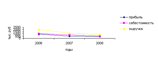Как видно из таблицы 1 и рисунка 4, на предприятии наблюдается незначительное снижение себестоимости услуги, а также снижение прибыли и выручки филиала.