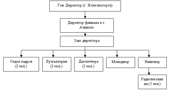 «Проблема расстояния между головным предприятием и филиалами решается по средствам связи (телефон, факс, электронная почта). В филиалах, в частности в Ачинском, действуют линейные системы управления», рис. 8.