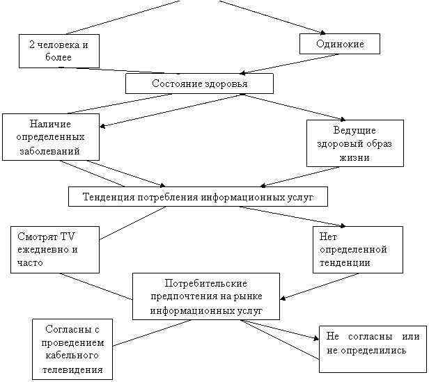 На рисунке 12 представлена схема последовательных разбивок потребителей. Как видно из схемы, потребители информационных услуг делятся на работающих и неработающих.