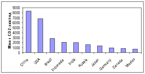 Страны с крупнейшими выбросами парниковых газов в атмосферу, включая поглощение и эмиссию в лесном хозяйстве (по состоянию на 2007 г.). Оценка на базе данных WRI http://cait. wri. org/ (данные по РФ по Национальным докладам в РКИК ООН, www. unfccc. int)