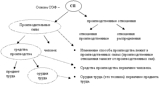 ОЭФ – это ни конкретное общество или государство, а это тип общества, некая абстракция, в основе которого лежит определенный способ производства. Именно способ производства (СП), т. е. способ, которым люди воспроизводят, и является определяющим фактором в жизни ОЭФ.