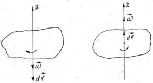 образуют правую тройку векторов, На рис. 8а представлено ускоренное вращение, а на рис. 8б замедленное вращение твердого тела.