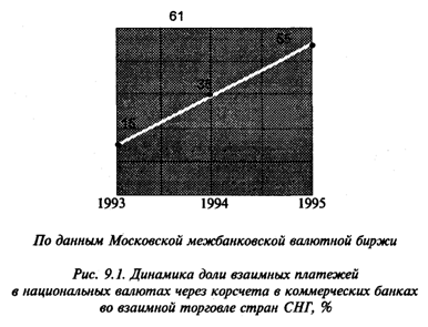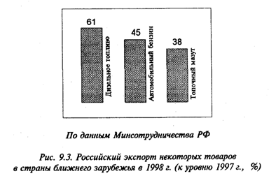 В условиях перехода к открытой экономике для Российской Федерации жизненно важное значение приобретает проблема выбора стратегии и тактики своего эффективного участия в мирохозяйственных процессах. В стратегическом плане Россия основывается на деполитизации международных экономических отношений и их развитии, на принципах, экономической целесообразности. Такого рода прагматический подход предполагает реальную оценку складывающейся ситуации и создание предпосылок для эффективной перестройки всей системы внешнеэкономических связей России как со странами дальнего, так и ближнего зарубежья, и прежде всего со странами СНГ (см. рис. 9.1, 9.2, 9.3).