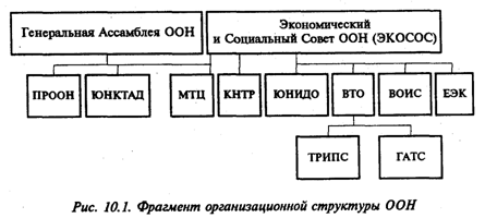 Фрагмент организационной структуры ООН, включающий названные учреждения, представлен на рис. 10.1.