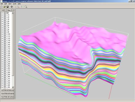 Все описанные выше алгоритмы включены в разработанный авторами программный комплекс, предназначенный для создания трехмерных моделей геологических структур их трехмерной визуализации, а также для расчета волновых полей в рамках созданных моделей.