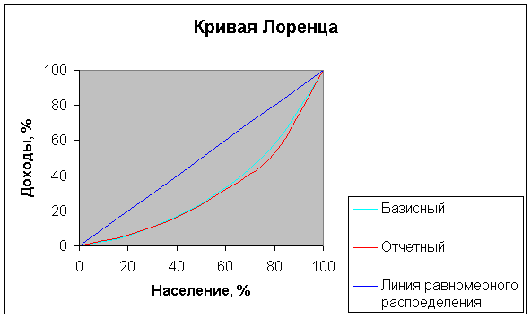 Задача 2. Увеличение коэффициента Джини с 0,3448 в базисном до 0,3696 в отчетном году свидетельствует об усилении дифференциации доходов населения региона.
