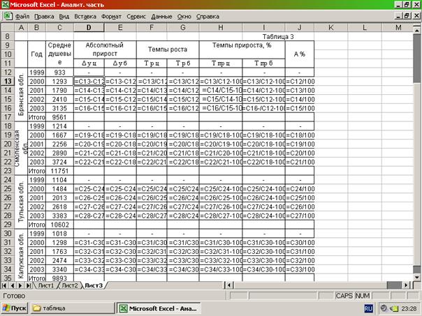 Расчетные формулы (1) – (5) в формате Excel представлены в таблице 3.
