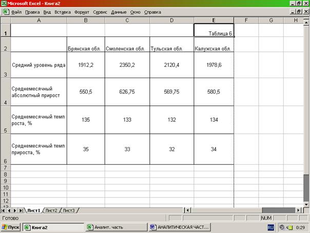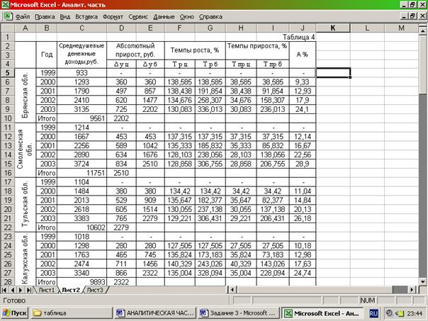 2. Положительный темп прироста свидетельствует о ежегодном увеличении денежных доходов: в Брянской области на 35 %, в Смоленской области на 33 %, В Тульской области на 32 % и в Калужской области на 34 %.