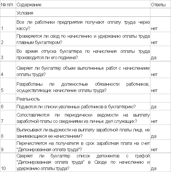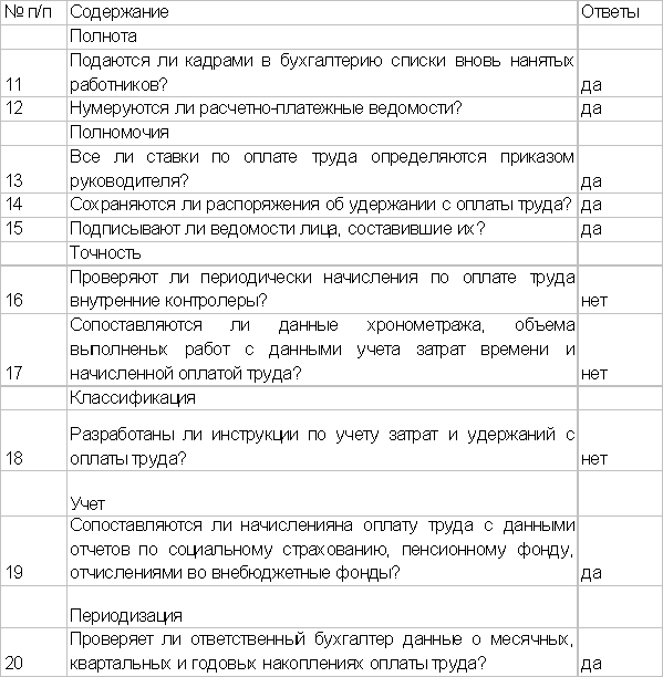 Для контроля документирования затрат на оплату труда используют вопросы и блок-схемы (табл.2).