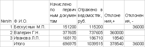 Результаты аудита расчетов по оплате труда целесообразно отразить в таблицах.