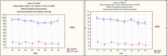 - осуществлена сравнительная статистическая оценка масштабов экологической корректировки воспроизводства на локальном и глобальном уровнях, выявлены кластеры и классы стран и соотнесены с ними регионы ПФО. Методами дисперсионного анализа обоснована существенность различий между типами устойчивого развития. Проведен многокритериальный анализ оптимальности воспроизводственных пропорций в странах мира, на основе чего для каждого из регионов ПФО предложены ориентиры развития. Полученные оценки определяют конкретные условия минимизации негативного влияния на экосистему региона;