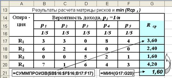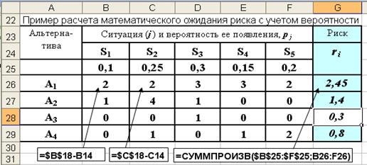 Рис. 3.8. Матрица рисков и величины среднего ожидаемого риска